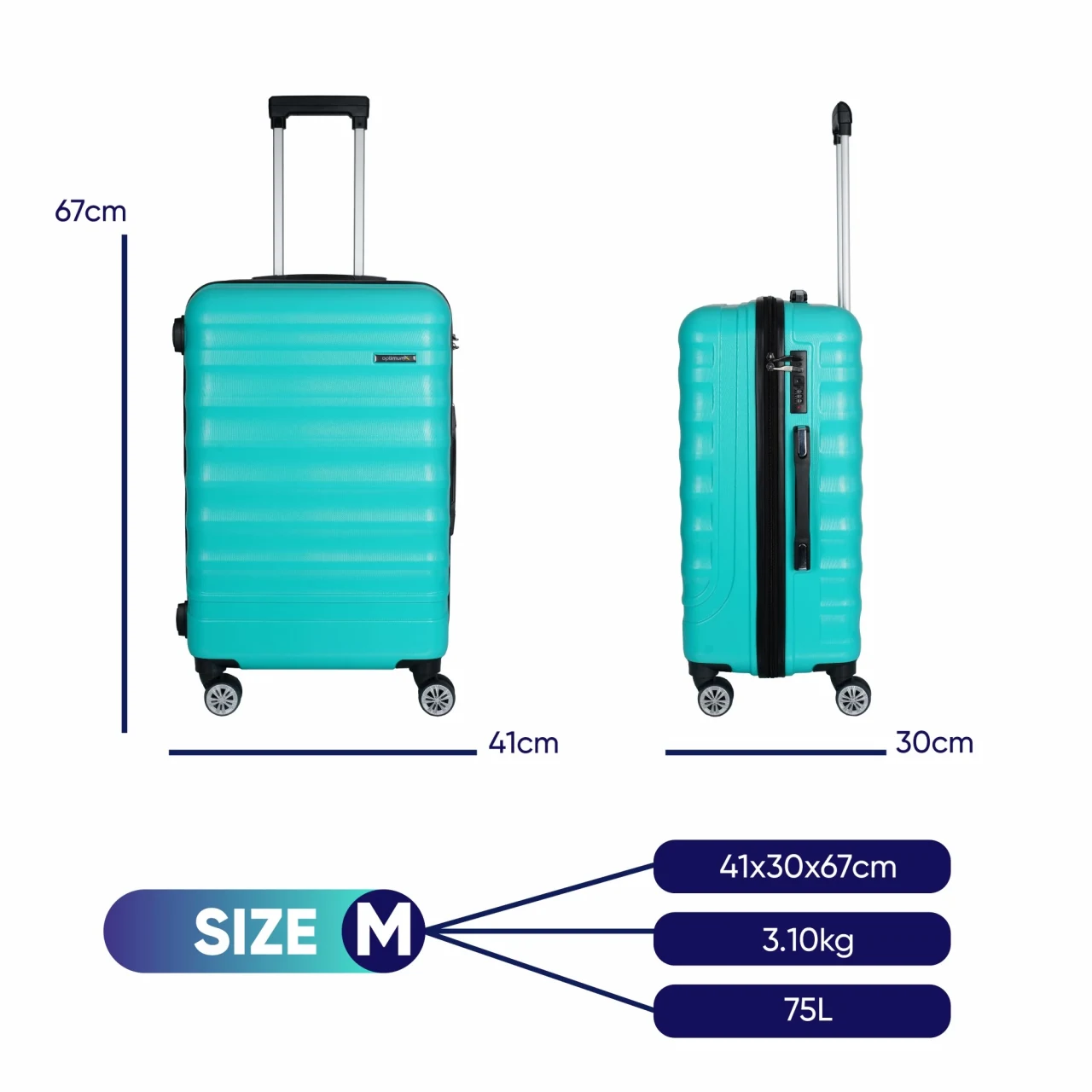• Orta boy valiz (boyutlar: 67x41x30 cm; ağırlık: 3,1 kg, hacim: 75 L)