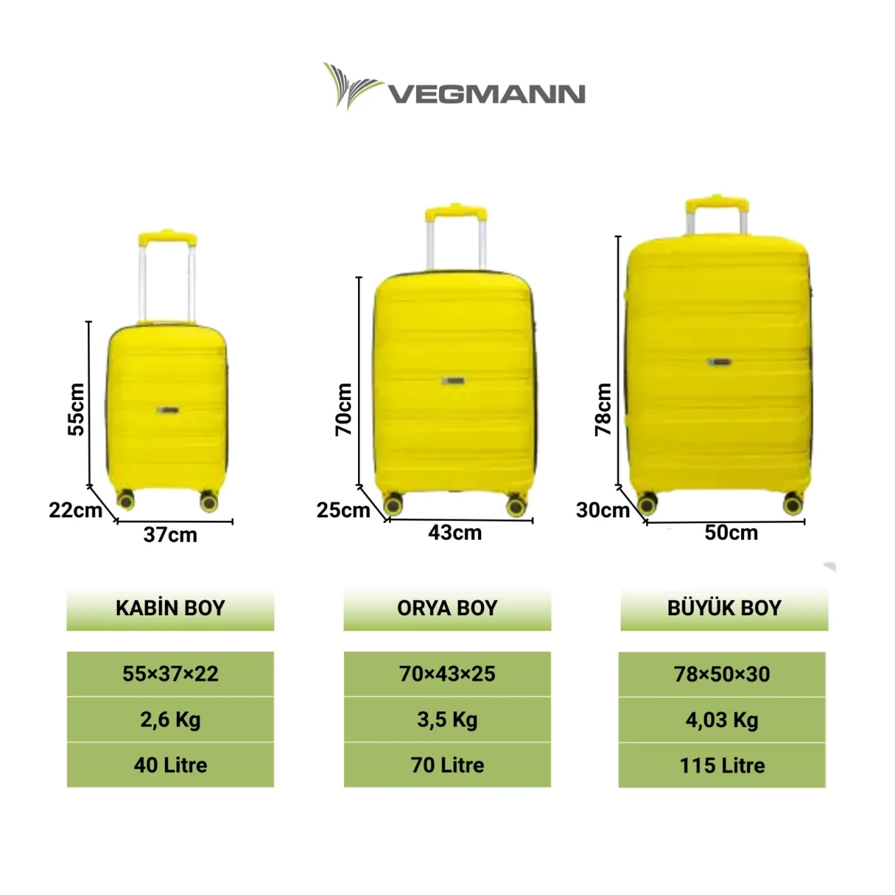 • Vegmann Polipropilen (PP) Atlas Sarı 3lü Valiz Seti