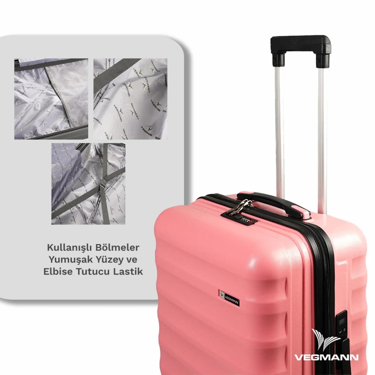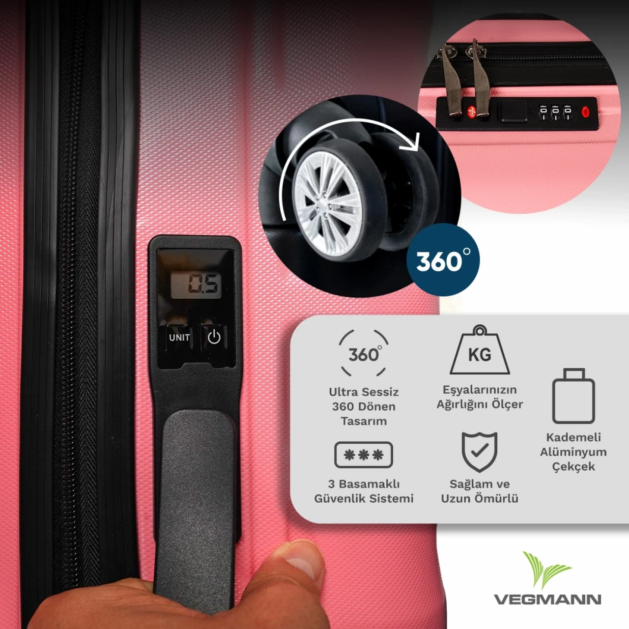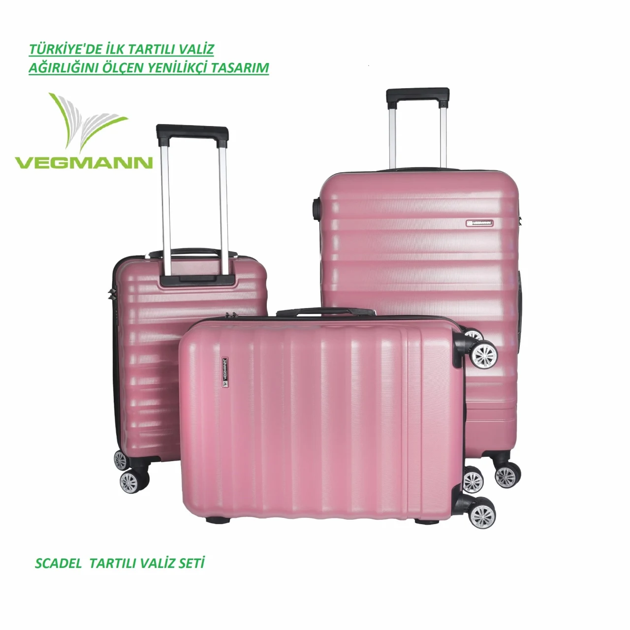 Vegmann Tartılı Scadel Pembe 3 lü Valiz Seti