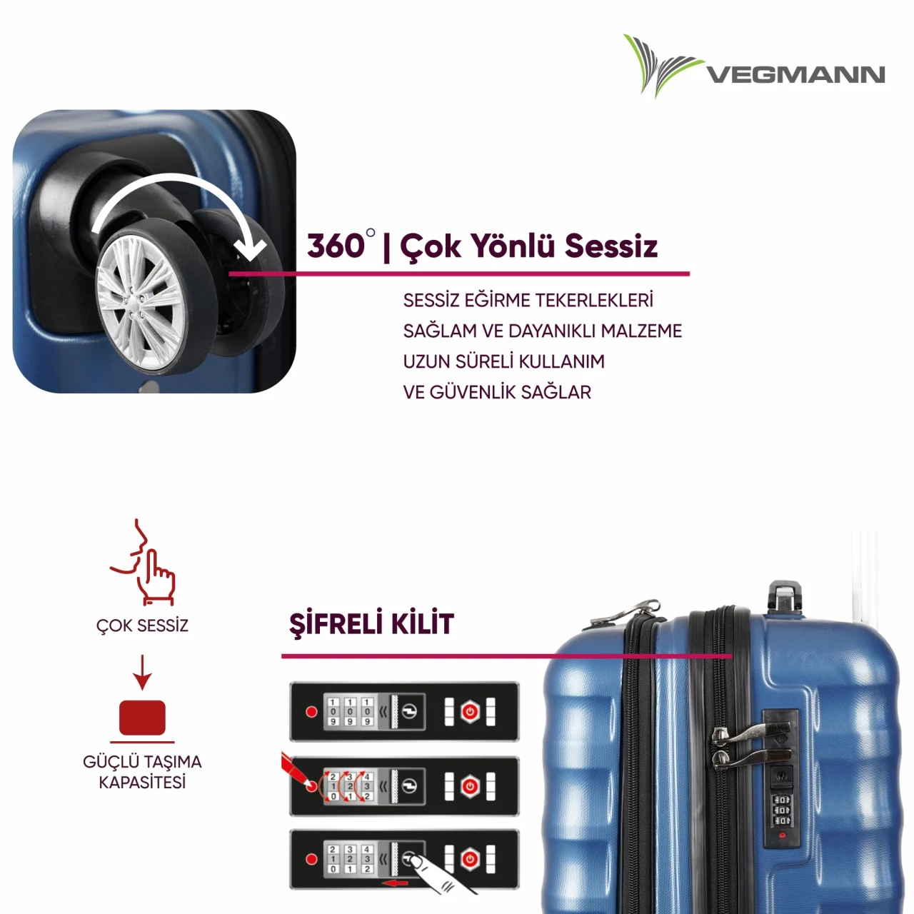 Vegmann Wave Laptop Bölmeli Mavi Kabin Boy Valiz