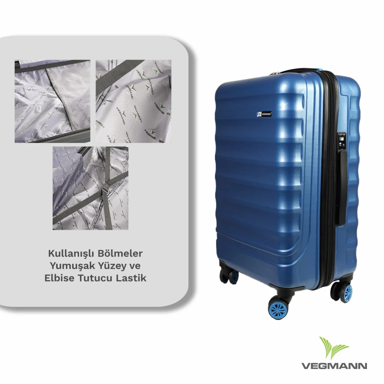 Vegmann Tartılı Scadel Mavi 3 lü Valiz Seti