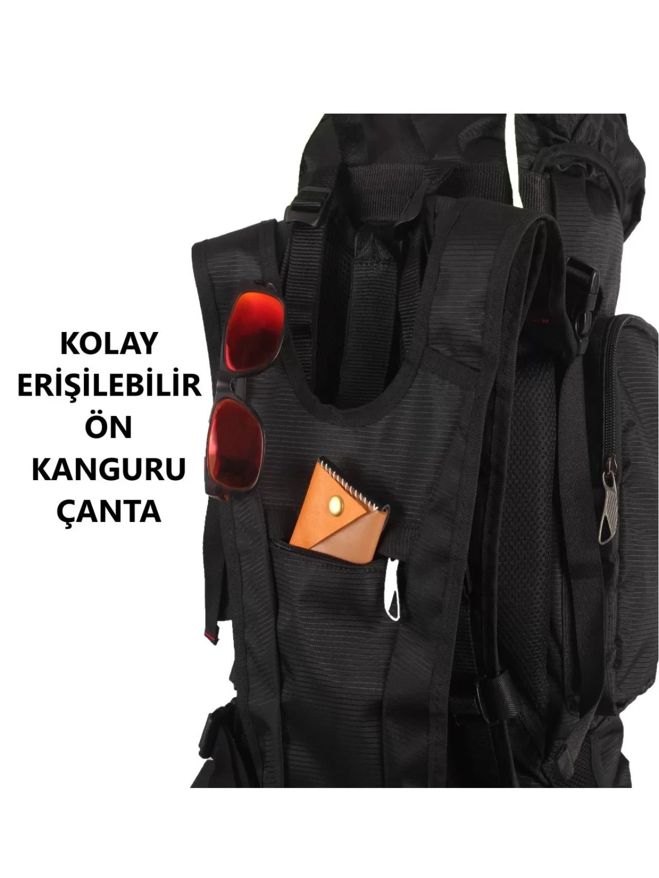 Seyahatiniz için yeterince geniş ana cep, üst cep, yancepler, ön cep, bel cepleri, alt cep ve dış bağlantı kayışlarını içerir.