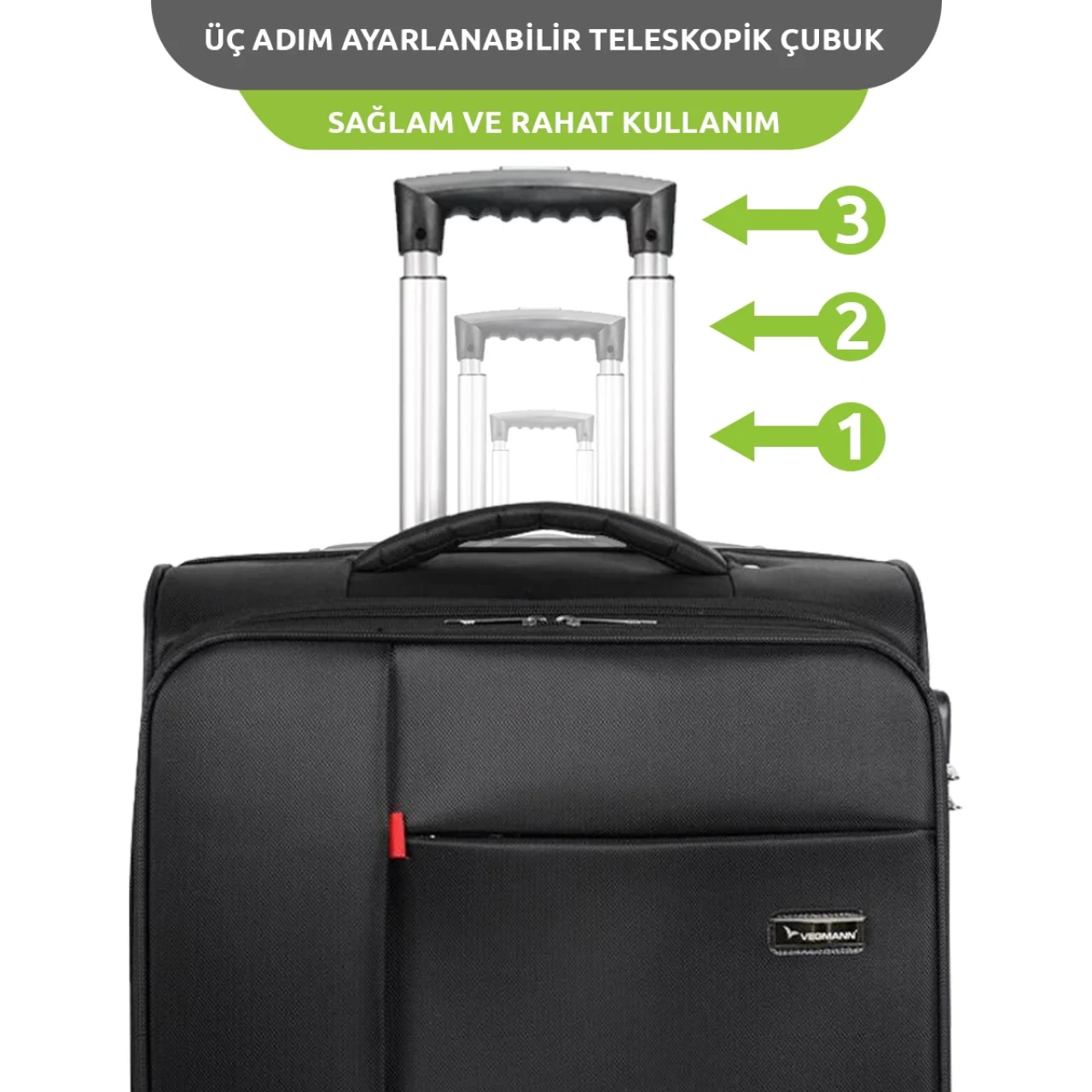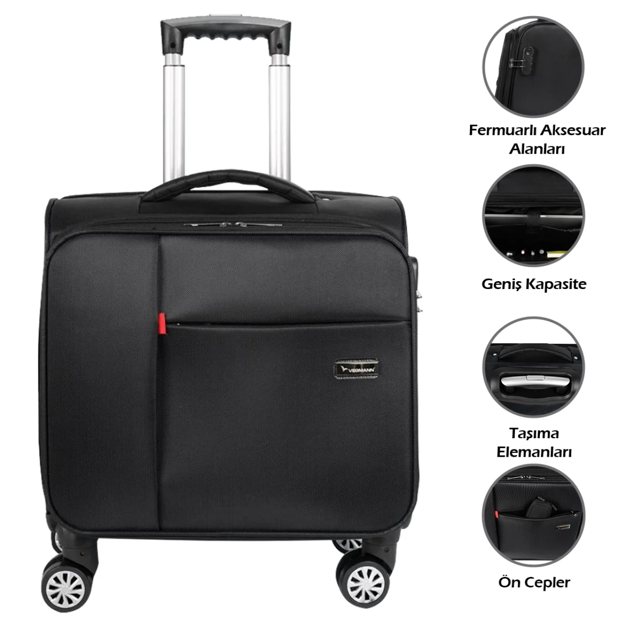 • Vegmann Carry-on Hostes Pilot Kabin Boy 15-17 inc Uyumlu Laptop Bölmeli Kumaş Valiz