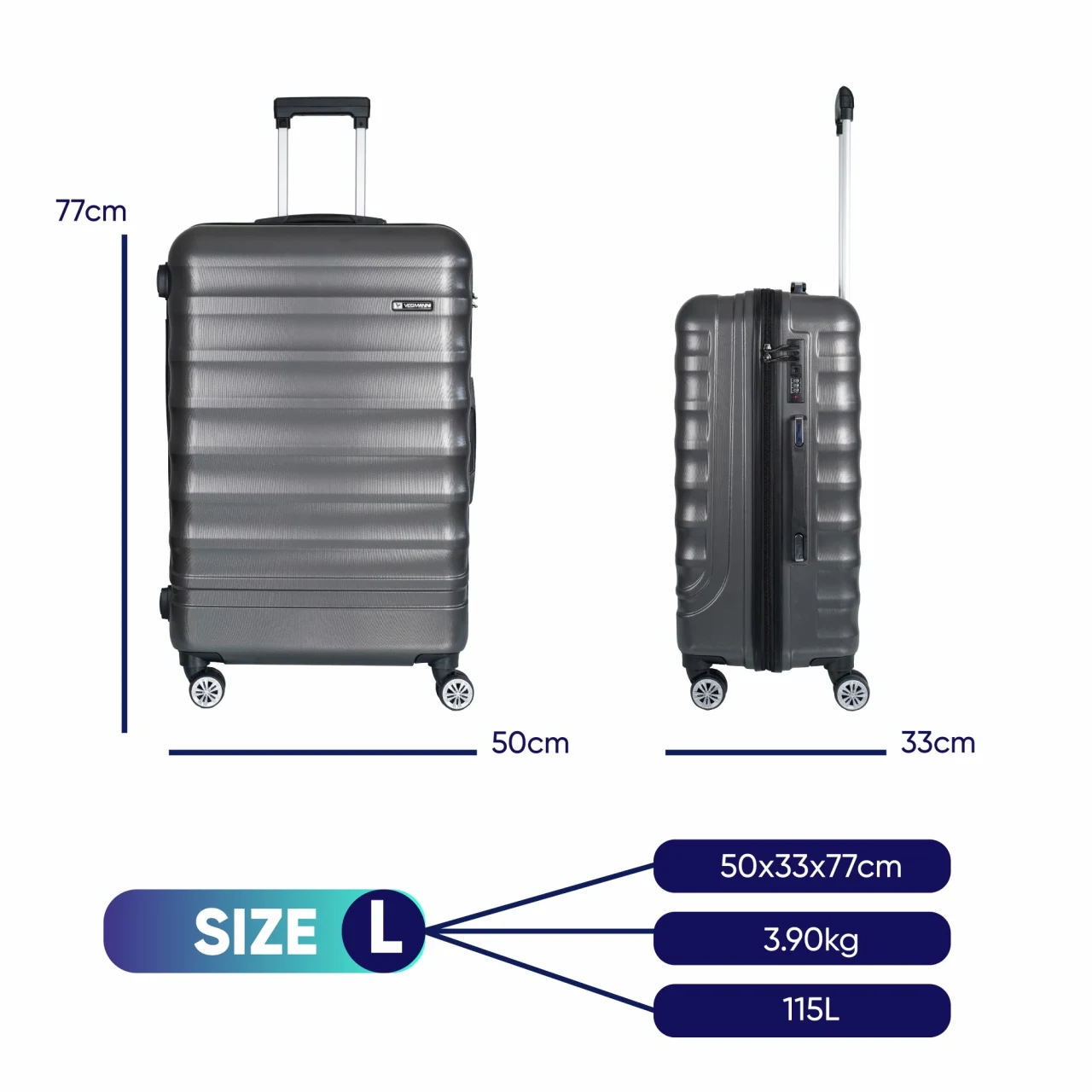 • Büyük boy valiz (boyutlar: 77x50x33 cm; ağırlık: 3,9 kg; hacim: 115 L)