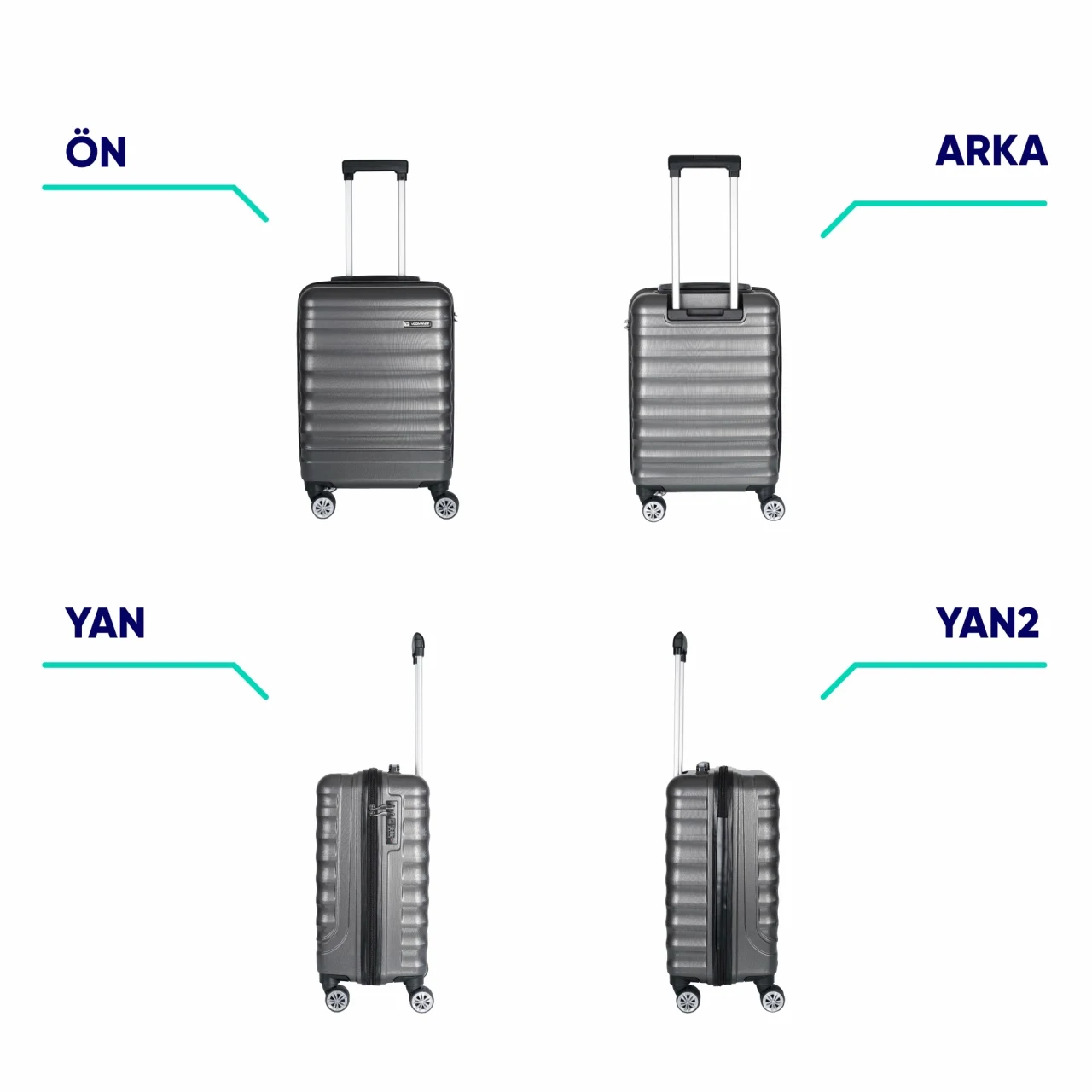 • DAYANIKLI KABİN BAGAJI : Üst düzey kalite ABS malzemeden üretilmiş olan ürünümüz, hafif ve şık olmasının yanı sıra kırılmaya ve ezilmeye karşı eşyalarınızı korurken güvenli seyahat imkanı sağlar.