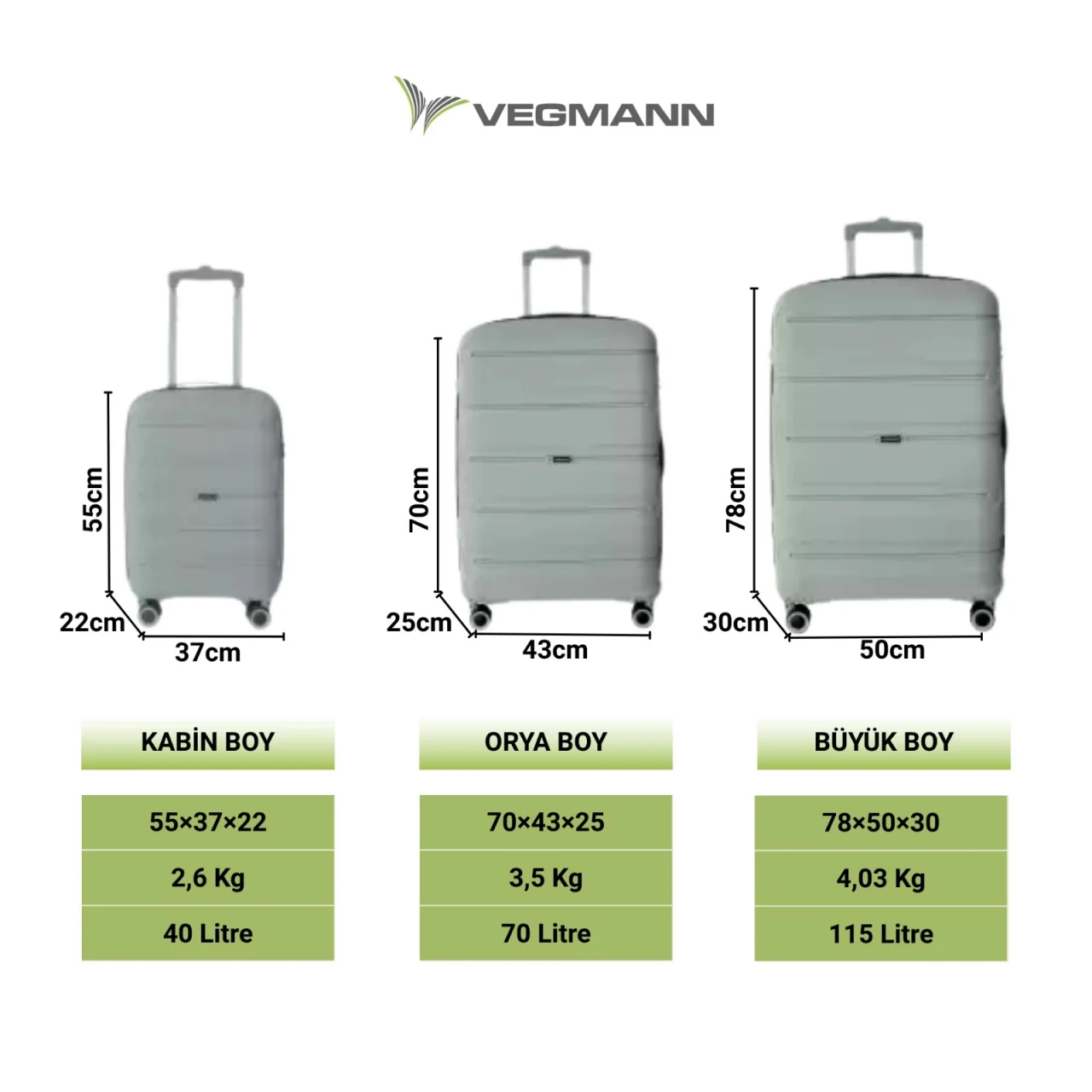 • Vegmann Polipropilen (PP) Atlas Gri Orta Boy Valiz