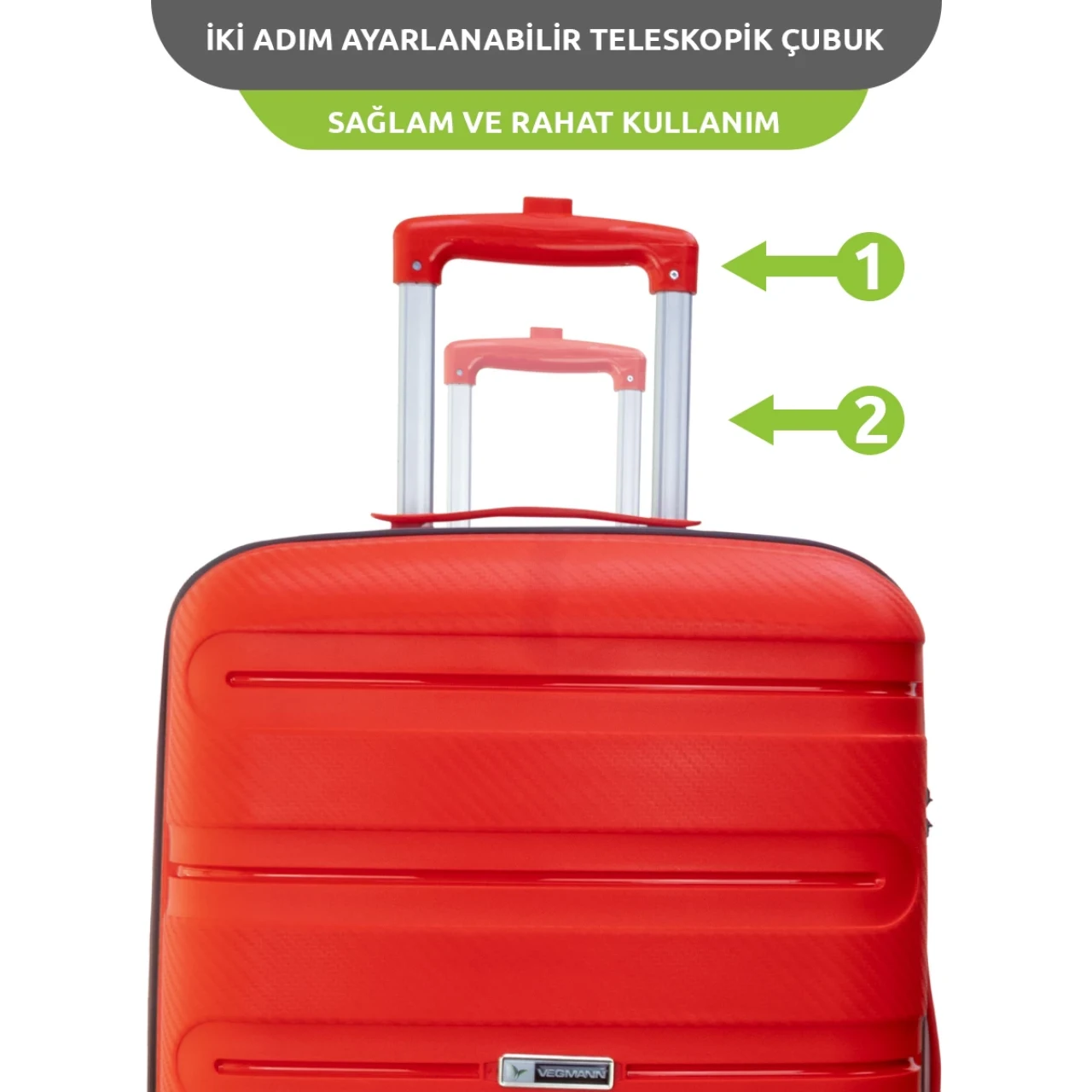 Vegmann Polipropilen (PP) Atlas Kırmızı 3lü Valiz Seti