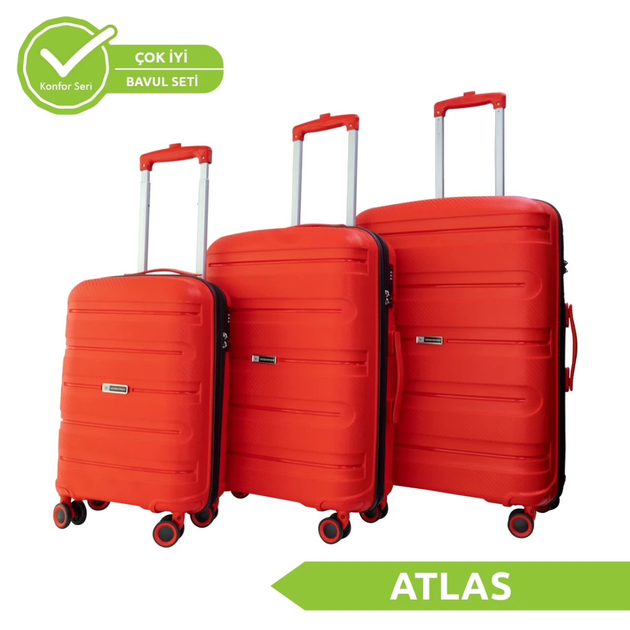• Vegmann Polipropilen (PP) Atlas Kırmızı 3lü Valiz Seti