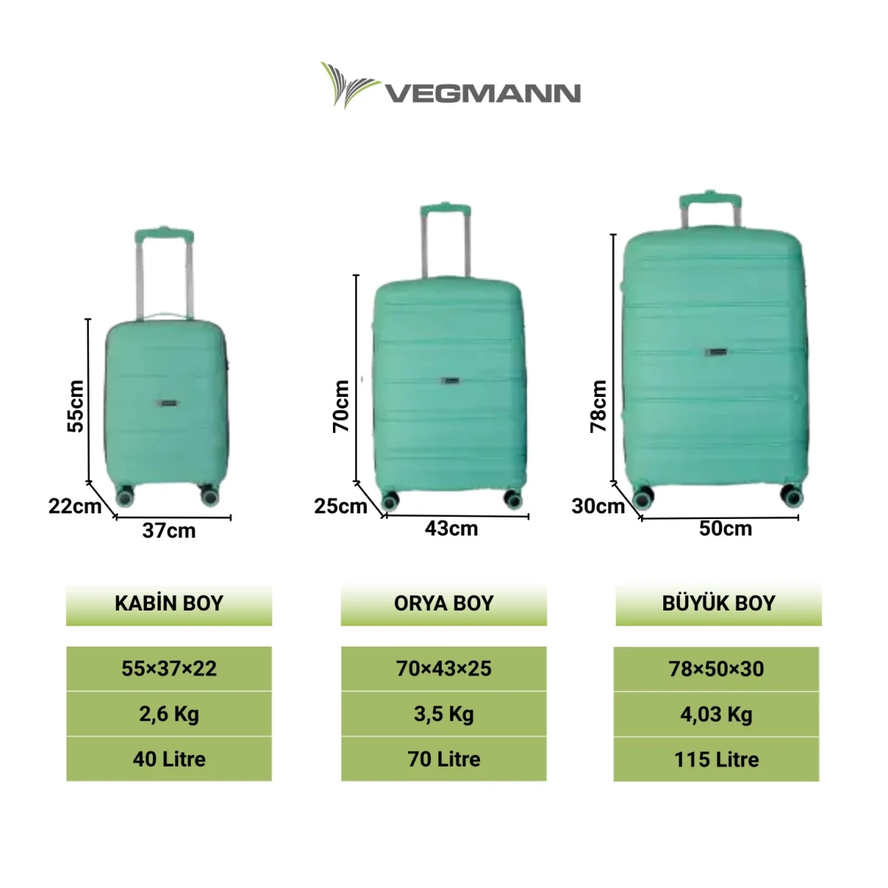 • Vegmann Polipropilen (PP) Atlas Su Yeşili Orta Boy Valiz