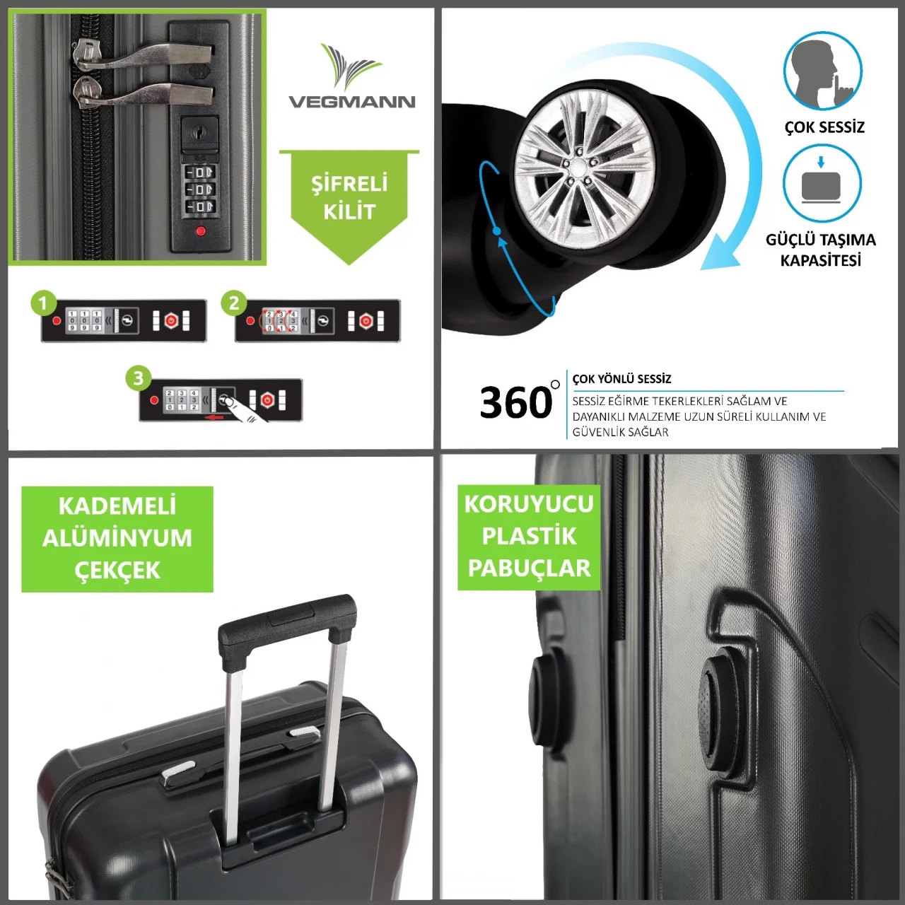 • Ağırlığı dengeleyip taşımayı kolaylaştıran, kauçuk-silikon malzemeden üretilmiş 360 derece dönebilen 4 adet tekerlek sistemi Sık dişli kalın fermuarlar Muadillerine göre daha hafif gövde yapısı ile bagaj kotası dostudur.